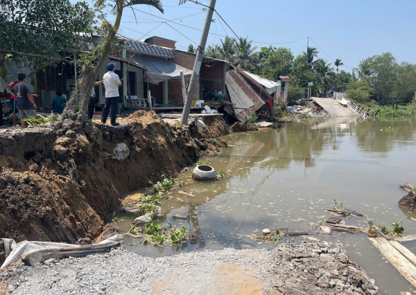 Trước đó, ngày 4/4, tuyến đường bờ Bắc kênh Tân Thành (xã Tân Hộ Cơ) cũng xảy ra sạt lở với chiều dài hơn 50m, gây ảnh hưởng đến ao cá và vật nuôi của người dân, thiệt hại khoảng hơn 5 tỷ đồng.