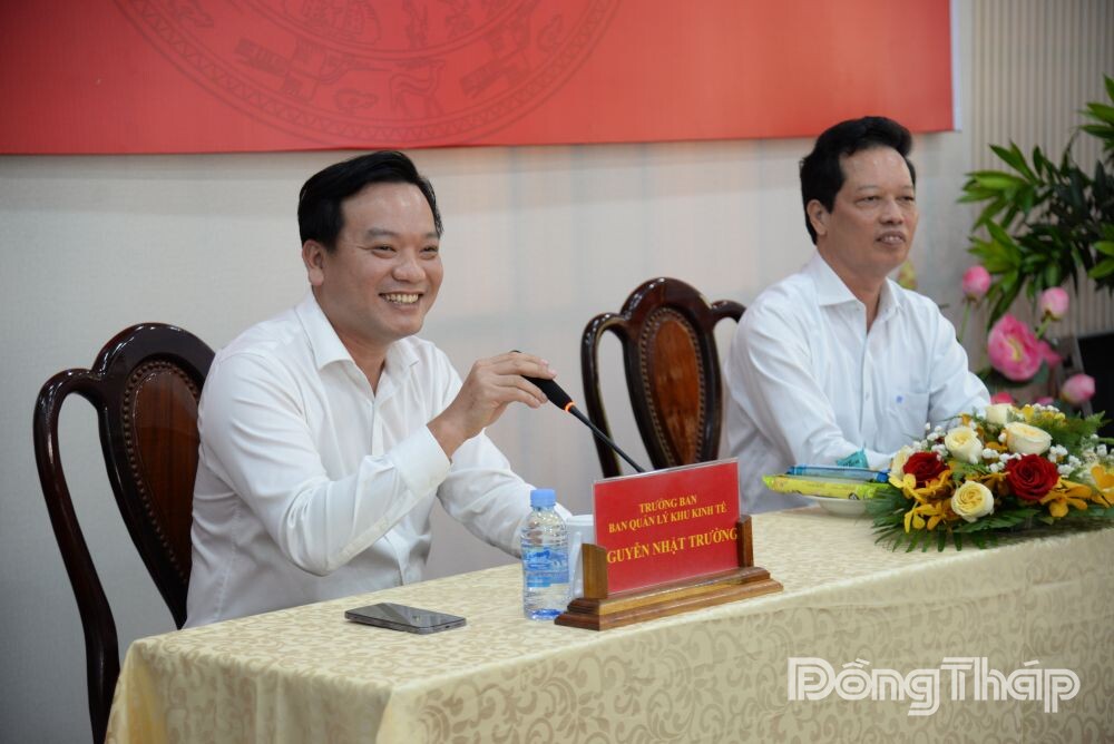 Đồng chí Nguyễn Nhật Trường, Trưởng Ban Quản lý Khu kinh tế tỉnh Đồng Tháp phát biểu tại buổi họp mặt.