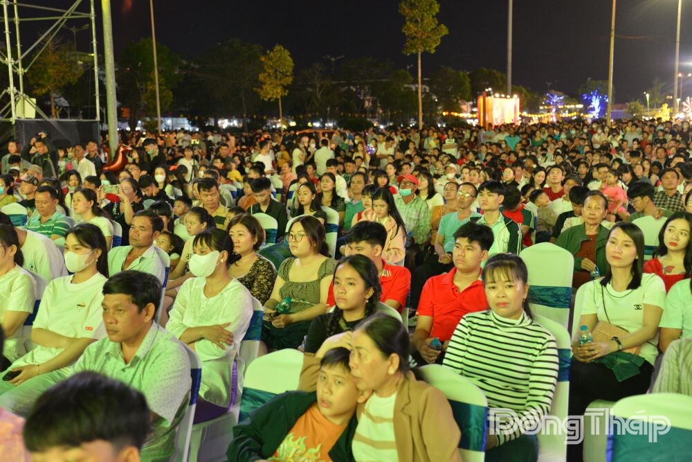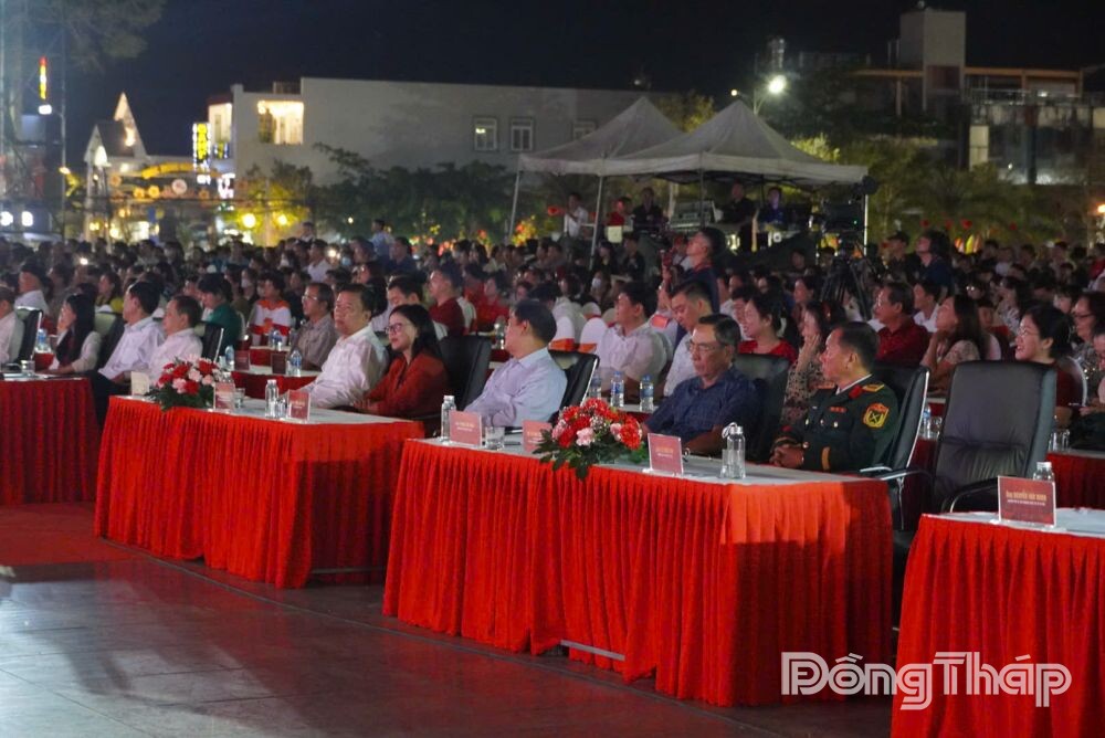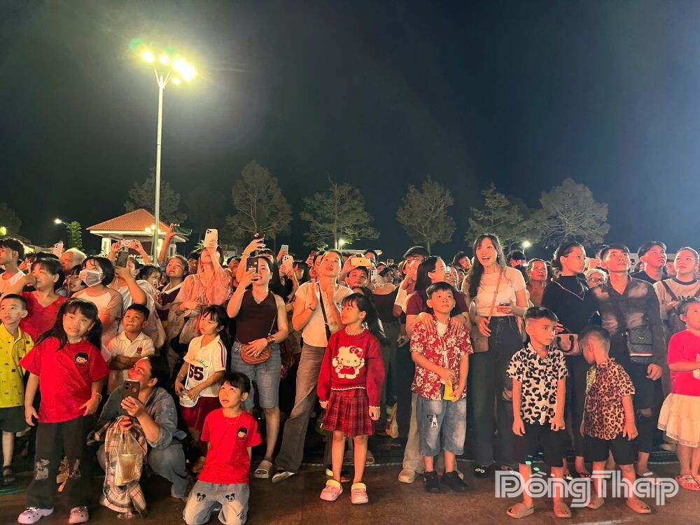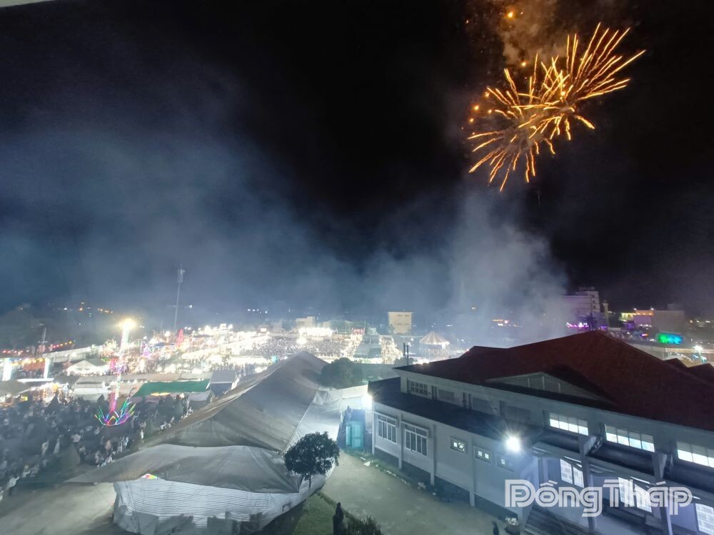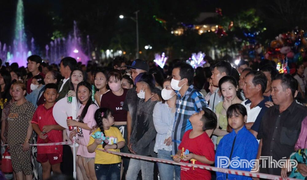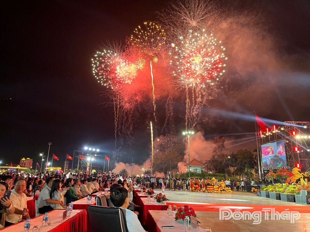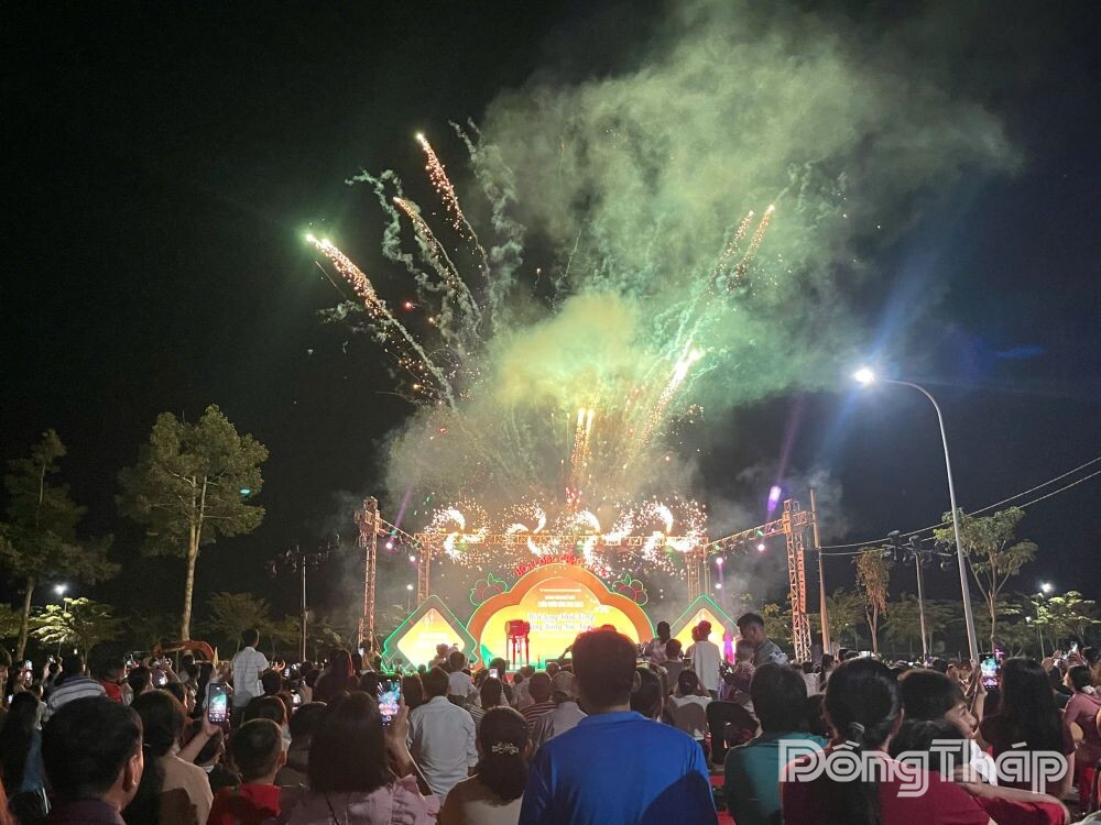 Hàng ngàn người dân đổ về Quảng trường Sa Đéc xem chương trình nghệ thuật và bắn pháo hoa.