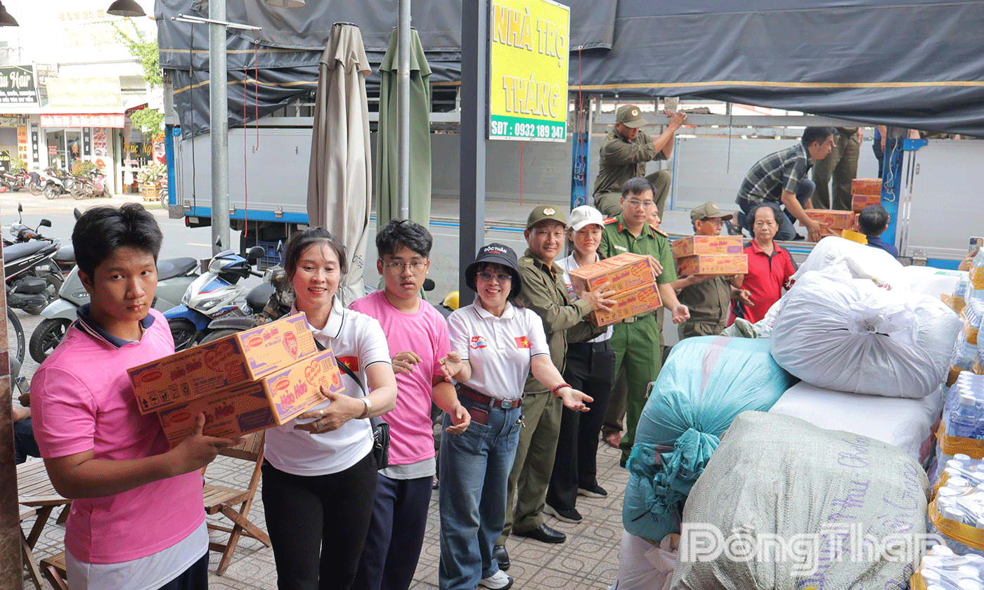 Trong khu vực tập kết, hàng hóa đóng góp đa dạng: Gạo, mì tôm, quần áo, thuốc men, nước uống... và nhiều nhu yếu phẩm thiết yếu. Từng thùng hàng được niêm phong cẩn thận, kèm theo những dòng nhắn gửi giản dị nhưng xúc động: “Chúc bà con sớm vượt qua khó khăn”, “Đồng Tháp hướng về miền Trung”, “Có ít góp ít, có nhiều góp nhiều”.