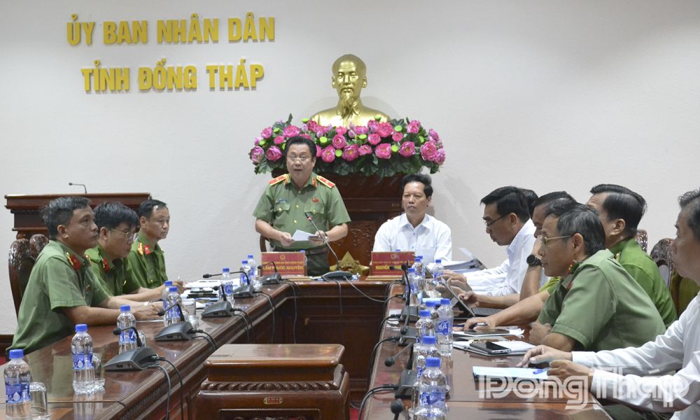 Tham dự và chủ trì tại điểm cầu tỉnh Đồng Tháp có các đồng chí: Thiếu tướng Lâm Phước Nguyên, Ủy viên Ban Thường vụ Tỉnh ủy, Giám đốc Công an tỉnh Đồng Tháp; Nguyễn Thành Diệu, Tỉnh ủy viên, Phó Chủ tịch UBND tỉnh Đồng Tháp.