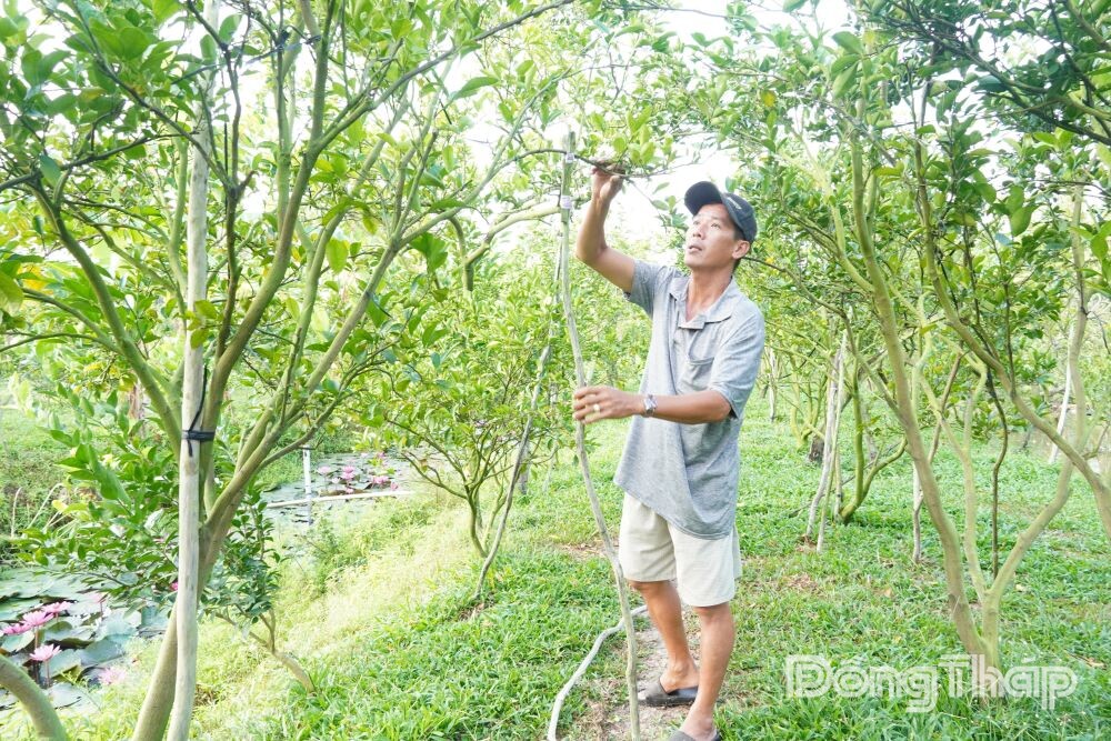 Ngay từ ngày mùng 3 Tết Nguyên đán tới nay, anh Nguyễn Văn Tho, ngụ xã Phong Hòa đã ra vườn tưới và chăm sóc khoảng 1ha quýt hồng.