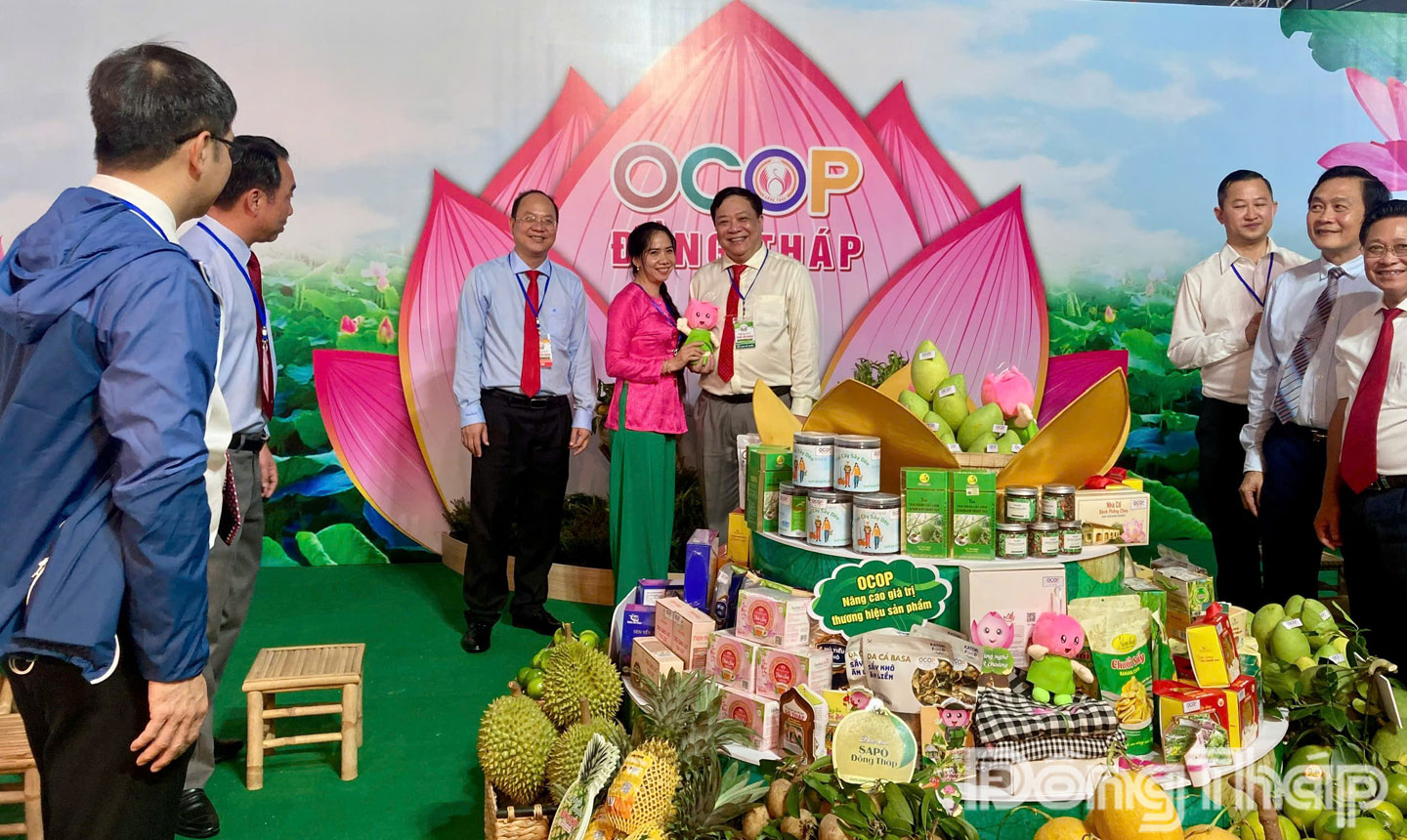 Khách tham quan gian hàng sản phẩm OCOP tỉnh Đồng Tháp.