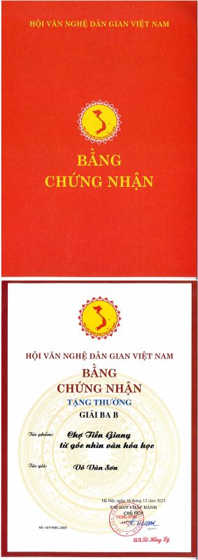 Tiến sĩ Võ Văn Sơn, Giảng viên chính Trường Đại học Tiền Giang, Hội viên Hội Văn nghệ dân gian Việt Nam tỉnh Đồng Tháp đoạt giải Ba B với công trình “Chợ Tiền Giang từ góc nhìn Văn hóa học”.