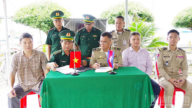 Đồn Biên phòng Cửa khẩu quốc tế Thường Phước và lực lượng chức năng Campuchia ký biên bản giao nhận 38 công dân.