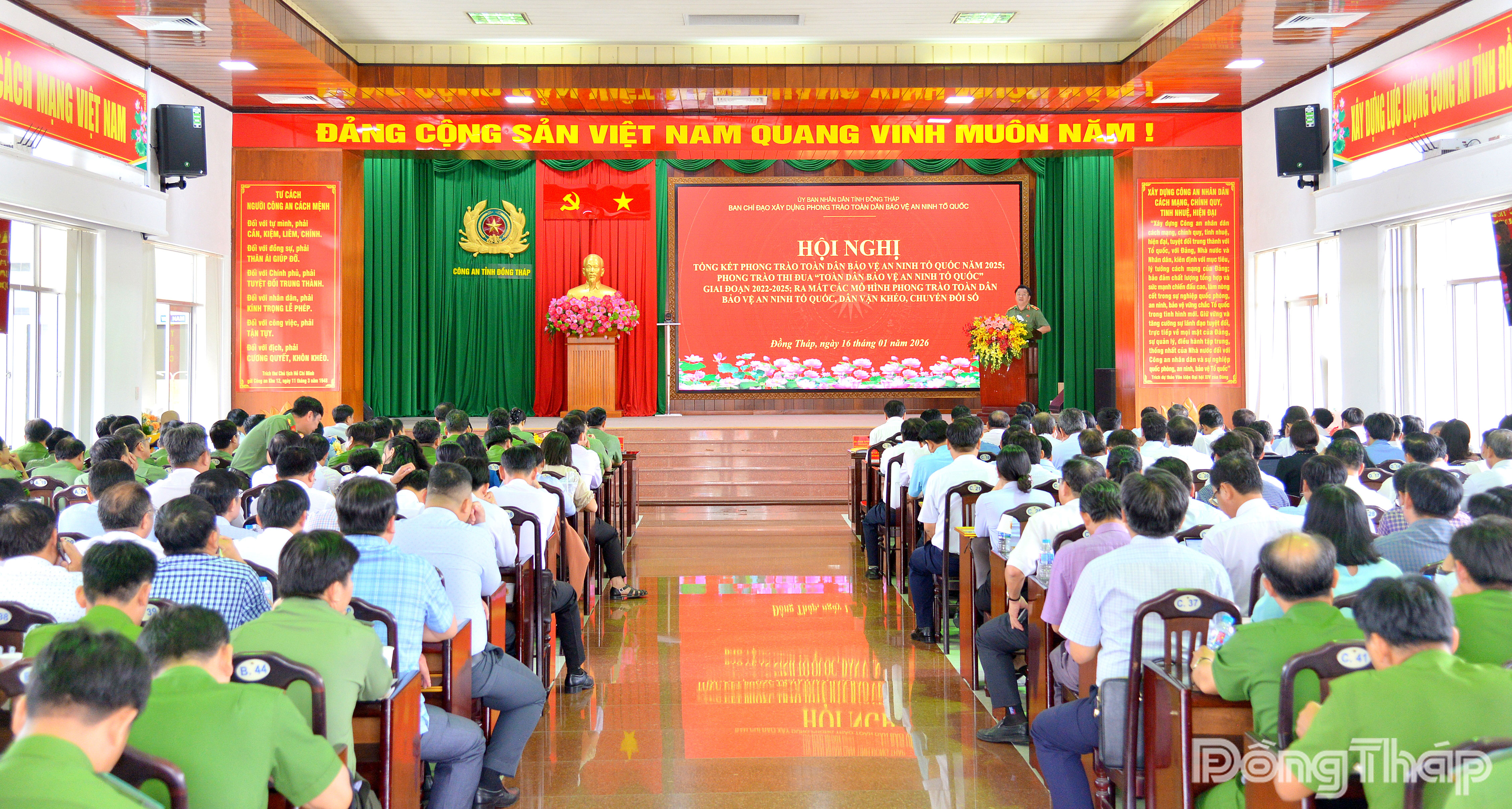 Tham dự hội nghị có các đồng chí: Phạm Thành Ngại, Phó Bí thư Tỉnh ủy, Chủ tịch UBND tỉnh, Trưởng Ban Chỉ đạo xây dựng phong trào toàn dân bảo vệ ANTQ tỉnh Đồng Tháp; Thiếu tướng Lâm Phước Nguyên, Ủy viên Ban Thường vụ Tỉnh ủy, Giám đốc Công an tỉnh Đồng Tháp; cùng đại diện lãnh đạo các sở, ban, ngành tỉnh, thành viên Ban Chỉ đạo tỉnh; lãnh đạo UBND và Công an các xã, phường trên địa bàn tỉnh.