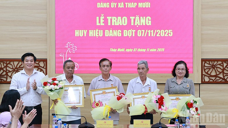 Trước đó, Đảng ủy xã Tháp Mười, tỉnh Đồng Tháp tổ chức lễ trao tặng Huy hiệu từ 30 năm tuổi Đảng trở lên cho 9 đảng viên, đang sinh hoạt tại các chi bộ thuộc Đảng bộ xã.