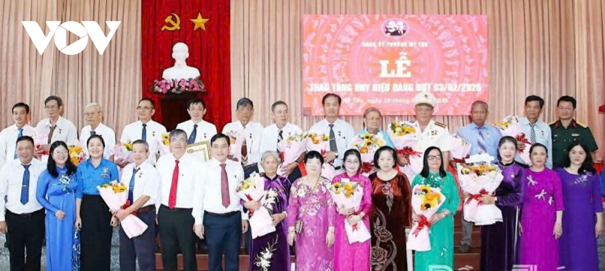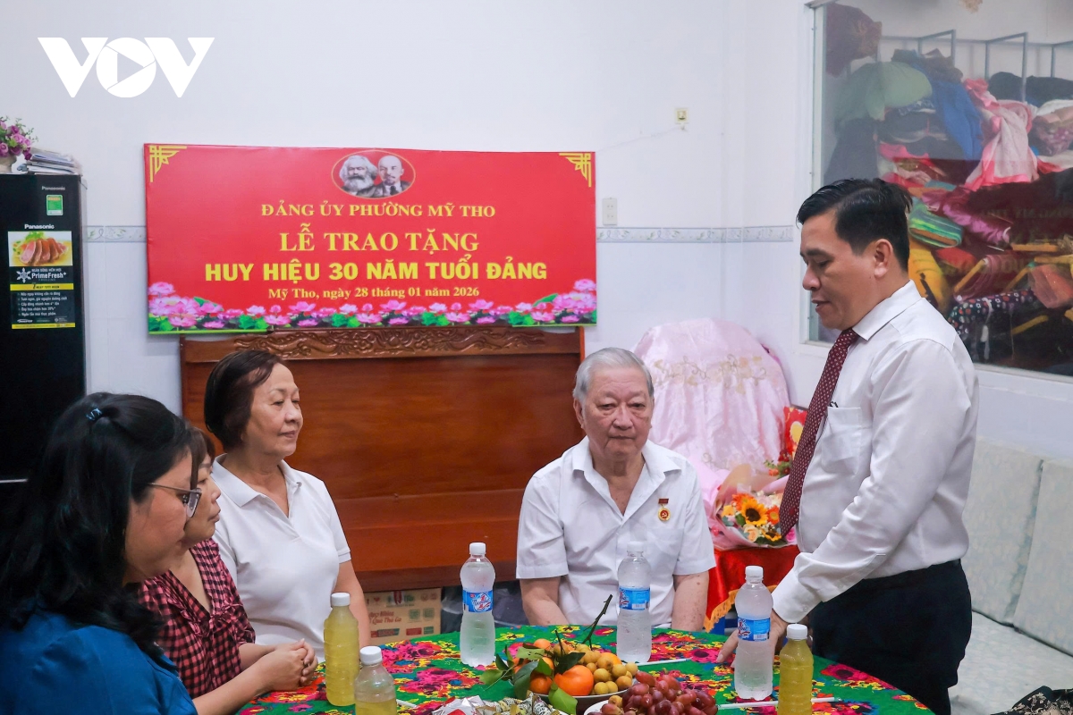 Đảng ủy phường Mỹ Tho, tỉnh Đồng Tháp trao tặng Huy hiệu Đảng cho đảng viên cao niên