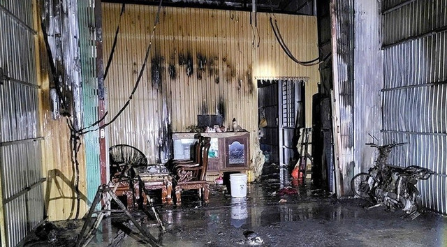 Nhà dân bị dây điện cháy rớt trúng cháy lan (Ảnh: MXH)