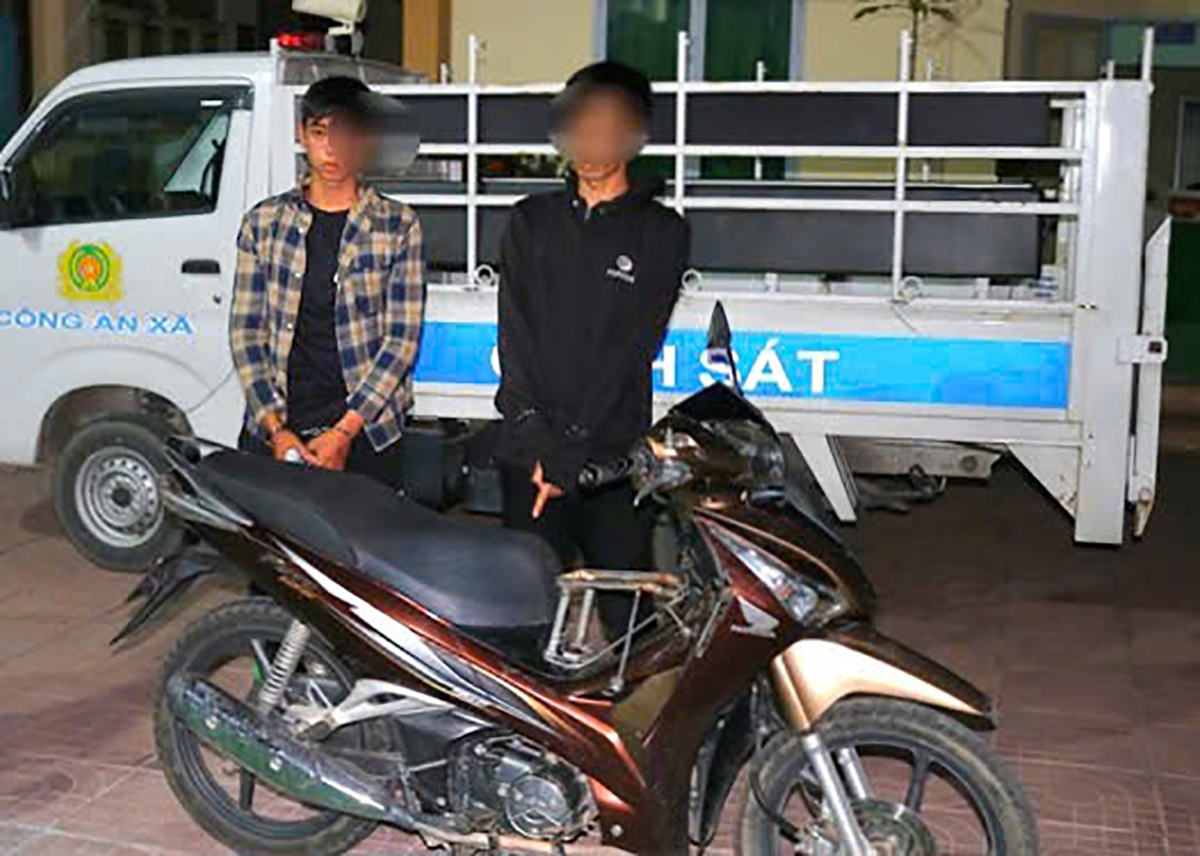 Hai đối tượng trộm cắp mô tô tại xã Mỹ An Hưng (ảnh: Công an cung cấp)