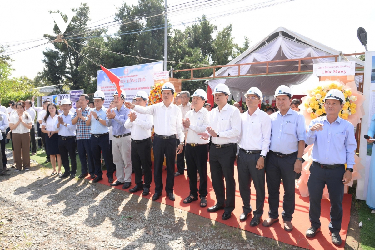 Các đại biểu dự lễ động thổ cống ngăn mặn Trà Tân và cống 26-3