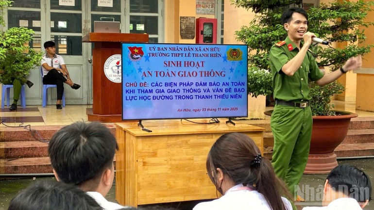 Ngày 3/11, Trường Trung học phổ thông Lê Thanh Hiền, xã An Hữu, tỉnh Đồng Tháp đã phối hợp Công an xã An Hữu và Đoàn Thanh niên xã An Hữu tổ chức buổi tuyên truyền về an toàn giao thông và phòng, tránh bạo lực học đường cho hơn 1.300 học sinh.