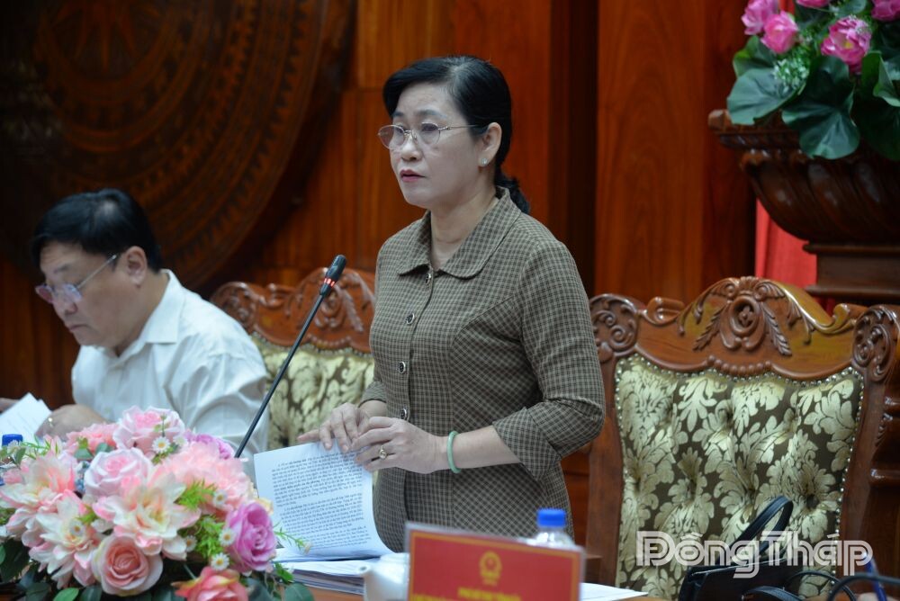Đồng chí Châu Thị Mỹ Phương phát biểu tại cuộc họp.