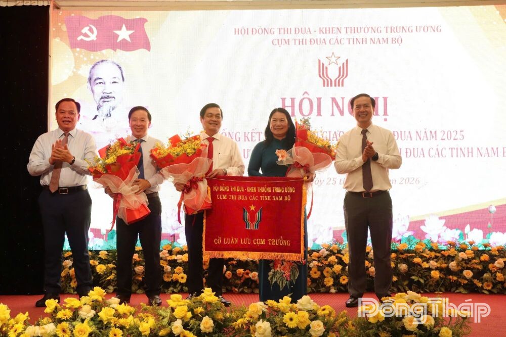 Trong khuôn khổ chương trình, Chủ tịch UBND tỉnh Đồng Nai Nguyễn Văn Út, Cụm trưởng Cụm thi đua các tỉnh Nam bộ năm 2025 đã trao Cờ luân lưu Cụm trưởng Cụm thi đua các tỉnh Nam bộ năm 2026 cho tỉnh Vĩnh Long và Cụm phó là tỉnh Cà Mau.