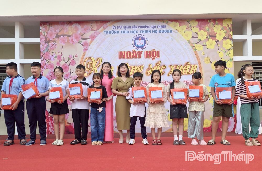 Dịp này, Trường Tiểu học Thiên Hộ Dương đã trao tặng 120 phần quà tết (1 triệu đồng/phần) cho 120 em HS.