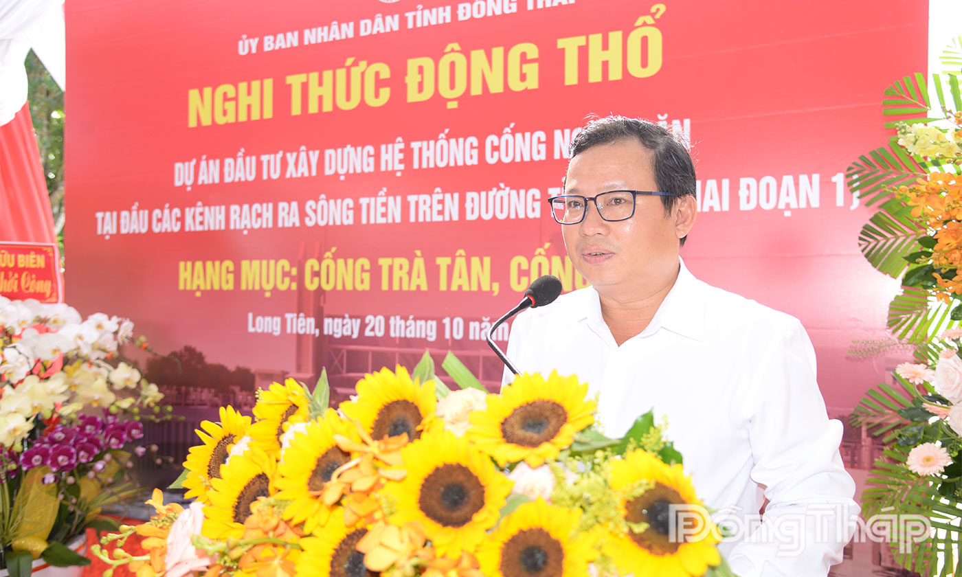 (ĐTO) Sáng 20-10, tại xã Long Tiên, tỉnh Đồng Tháp, Ban Quản lý dự án đầu tư xây dựng công trình nông nghiệp và phát triển nông thôn tỉnh Đồng Tháp (gọi tắt là Ban Quản lý dự án nông nghiệp) tổ chức nghi thức động thổ gói thầu thi công xây dựng cống Trà Tân và cống 26-3 thuộc Dự án đầu tư xây dựng hệ thống cống ngăn mặn tại các đầu kinh, rạch ra sông Tiền trên đường tỉnh 864 giai đoạn 1.