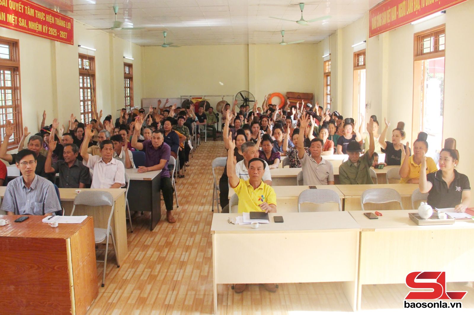 Mặc dù thời tiết nắng nóng, thời điểm bước vào vụ sản xuất cây trồng trên nương, song đông đảo cử tri đại diện hộ gia đình thuộc các địa bàn diện sắp xếp, tổ chức lại đơn vị hành chính cấp xã đến dự và thực hiện quyền, nghĩa vụ, trách nhiệm cao đối với sự kiện quan trọng của đất nước, địa phương.