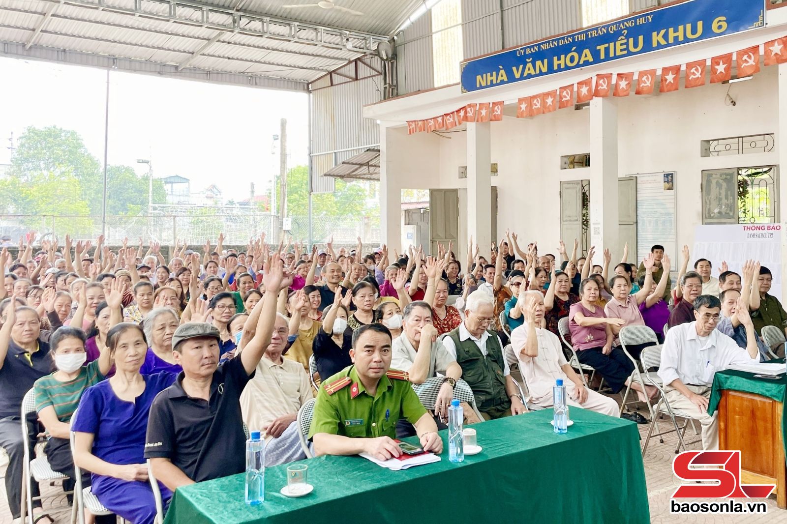 Cử tri tiểu khu 6, thị trấn Quang Huy, huyện Phù Yên biểu quyết nhất trí phương án sắp xếp, tổ chức lại đơn vị hành chính cấp xã. Ảnh: PV