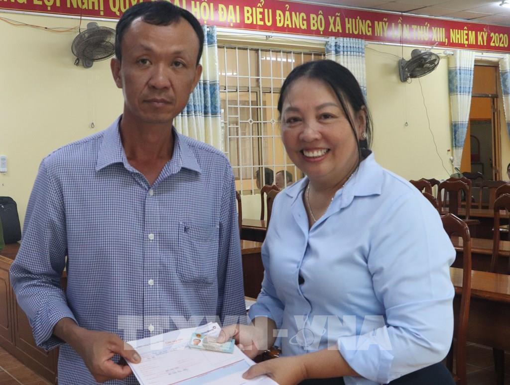 Người dân xã Hưng Mỹ, tỉnh Cà Mau, nhận tiền bồi hoàn giải phóng mặt bằng dự án. Ảnh: Tuấn Phi-TTXVN