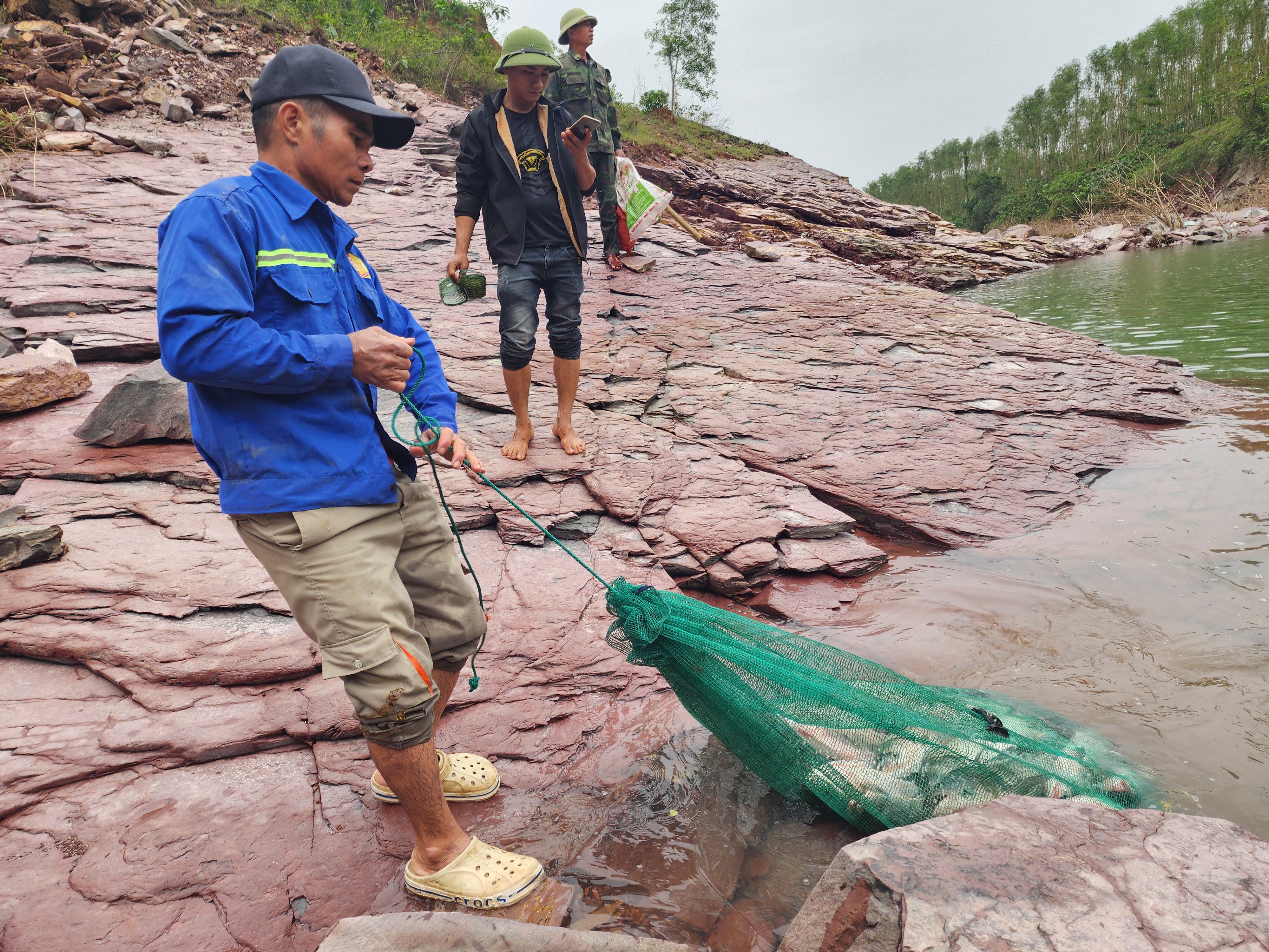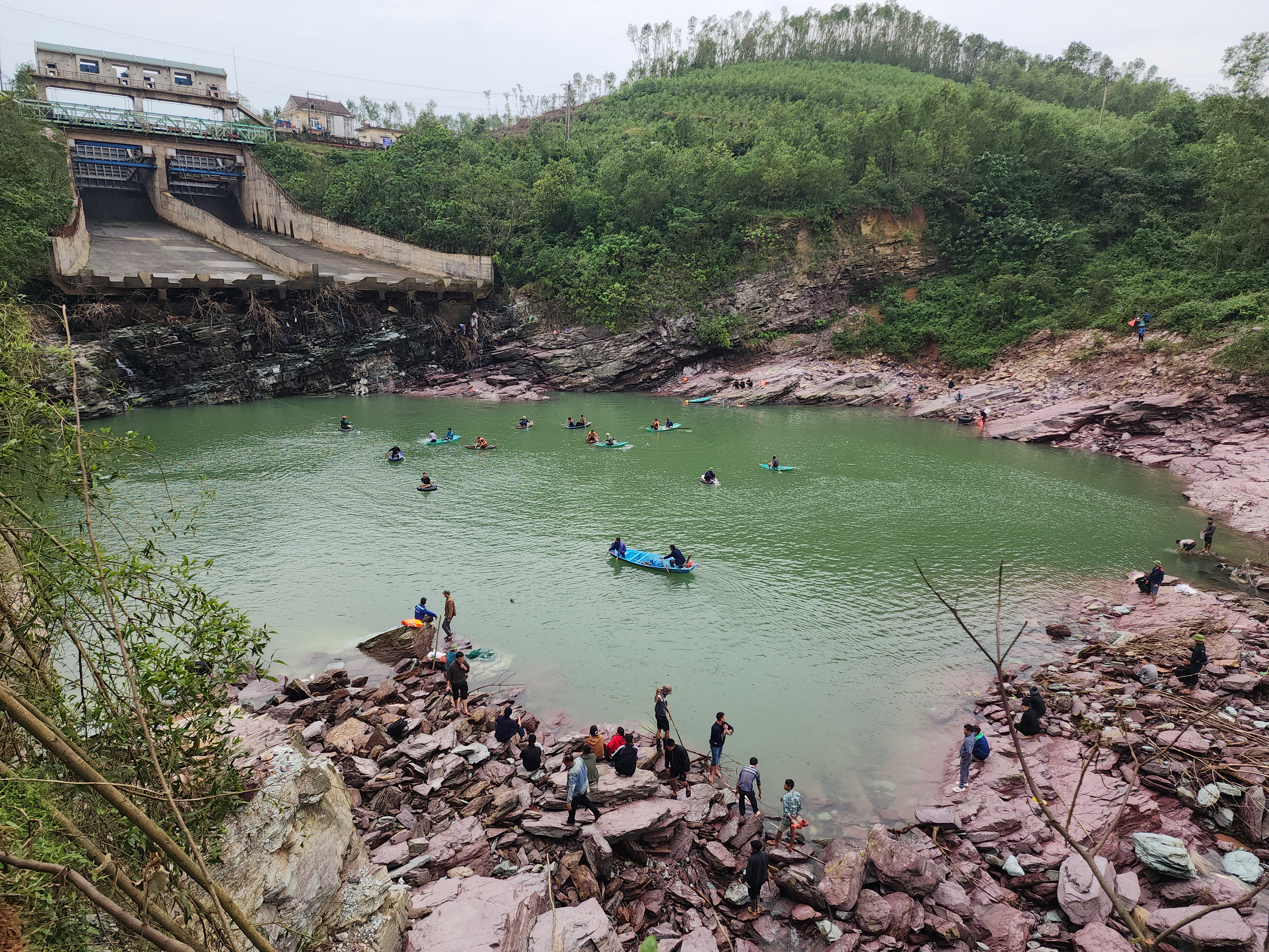 Vì vậy, mỗi khi xả tràn, cá từ trong hồ theo dòng nước qua cửa xả tràn rồi quy tụ lại ở một khu vực ngay dưới cửa xả tràn. Sau đó, khi đóng cửa xả tràn thì đây là cơ hội để người dân đến giăng lưới bắt cá, kiếm thêm thu nhập nhập tiền triệu chỉ trong mấy giờ đồng hồ.