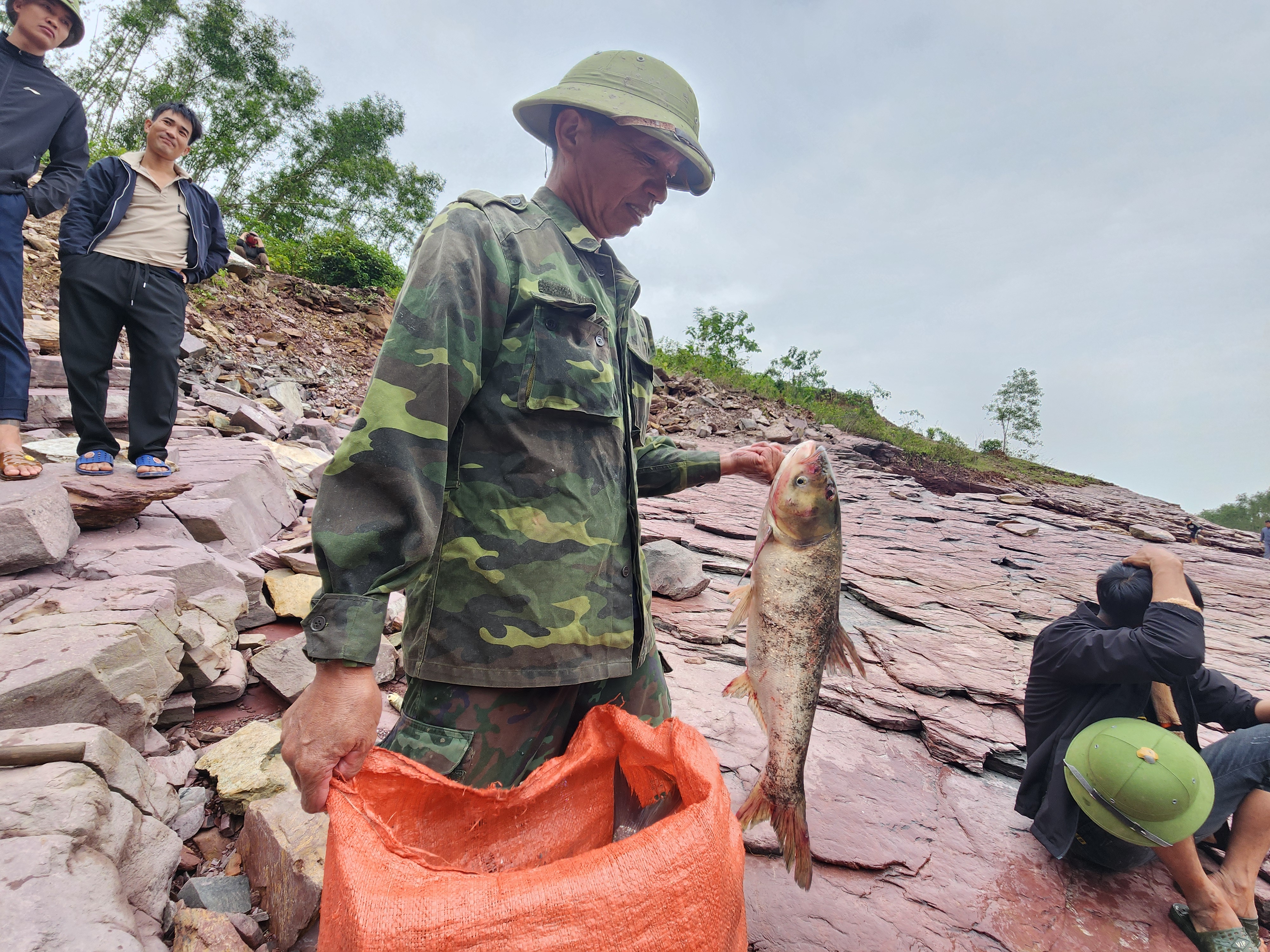 Ngay sau khi đánh bắt, nhiều người đã bán cá ngay tại chỗ hoặc mang về nhà. Người may mắn thu về 2-3 triệu đồng, người ít thì cũng được mấy trăm ngàn đồng.