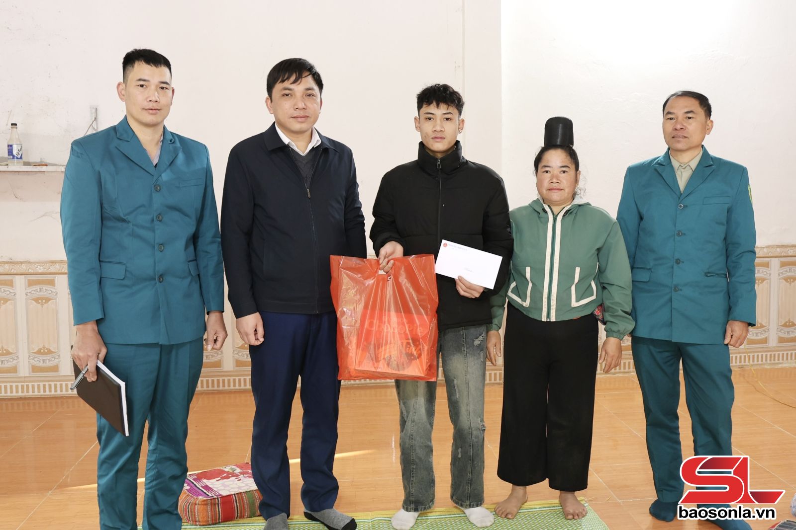 Lãnh đạo xã Chiềng La thăm, tặng quà công dân chuẩn bị lên đường nhập ngũ.