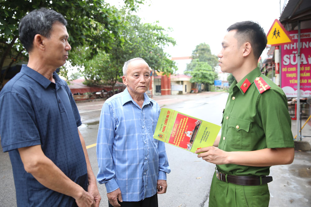 Cán bộ Công an xã Đồng Việt tuyên truyền phòng, chống ma túy đến các thành viên dòng họ Vũ Trí.