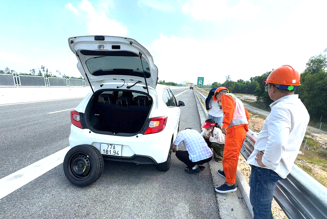 Khoảng 9h ngày 30/4, trên tuyến cao tốc Hoài Nhơn - Quy Nhơn, khi phát hiện phương tiện bị thủng lốp, lực lượng của Văn phòng Quản lý đường bộ III.2 (Khu Quản lý đường bộ III) đã hỗ trợ phương tiện thay lốp kịp thời để tiếp tục lưu thông.