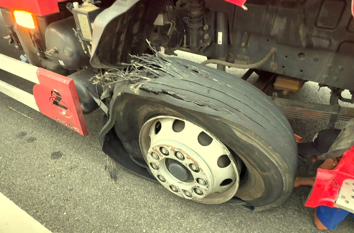 Một phương tiện hư hỏng phần lốp xe trên cao tốc Hoài Nhơn - Quy Nhơn, đoạn qua xã Bình An, Gia Lai.