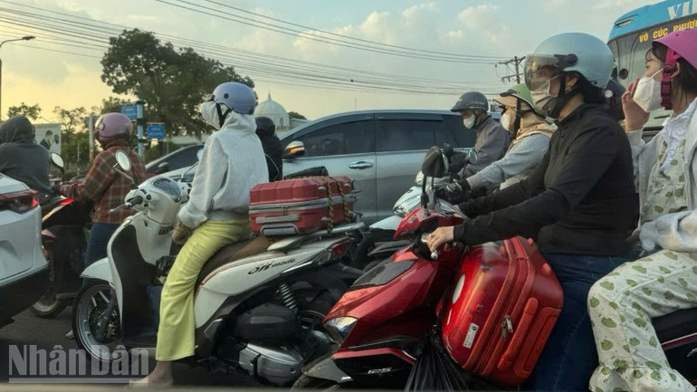 Trên Quốc lộ 14, lượng xe máy tăng đột biến do người dân từ khu vực Tây Nguyên trở lại Thành phố Hồ Chí Minh, Đồng Nai làm việc. Dòng xe máy với hành lý trên xe nối dài nhiều km theo hướng đi Thành phố Hồ Chí Minh. Tình trạng ùn ứ không xảy ra, các phương tiện lưu thông ổn định.