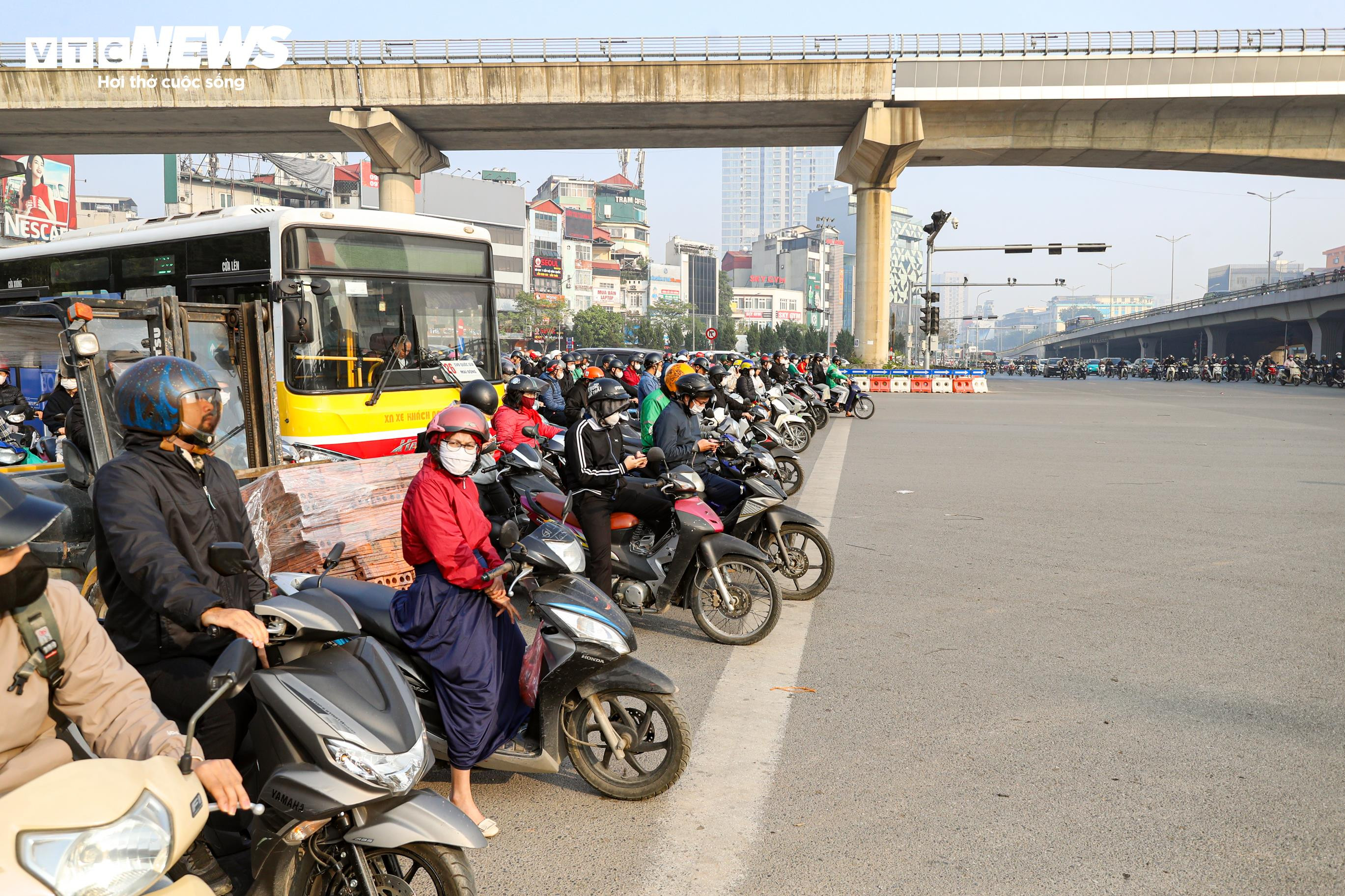 Tại đường Hồ Tùng Mậu, nơi luôn đông kín xe vào buổi sáng, cảnh dòng xe dừng thẳng hàng trước vạch khiến nhiều người bất ngờ. Từng hàng xe máy không còn ép sát nhau, các ô tô cũng giữ khoảng cách hợp lý.