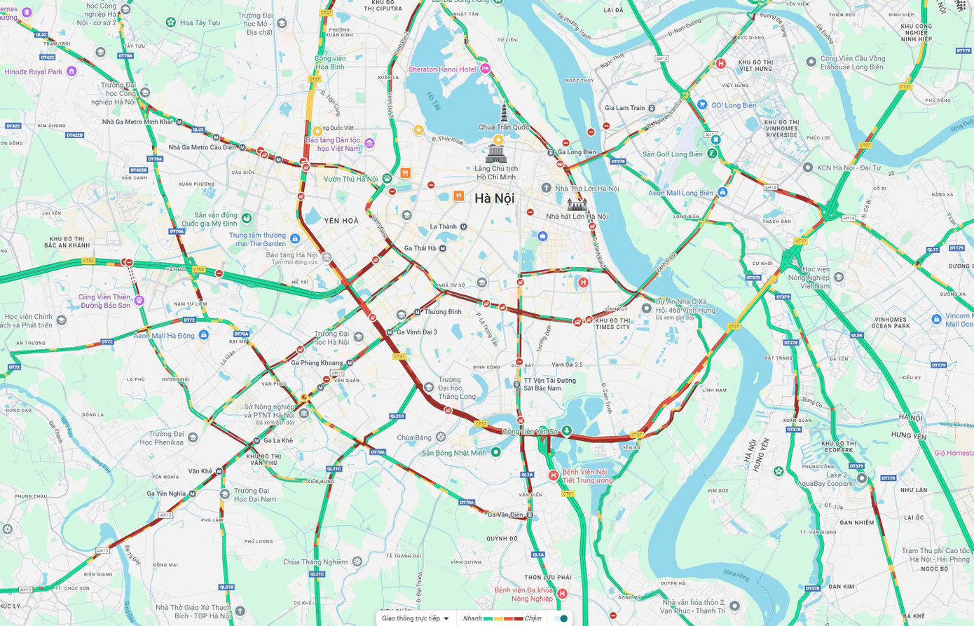 Mật độ giao thông Hà Nội ghi nhận lúc 17h. Ảnh: Google Maps