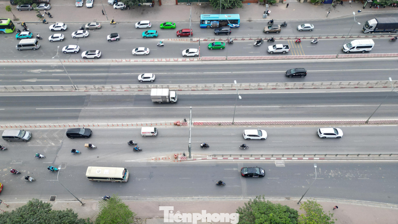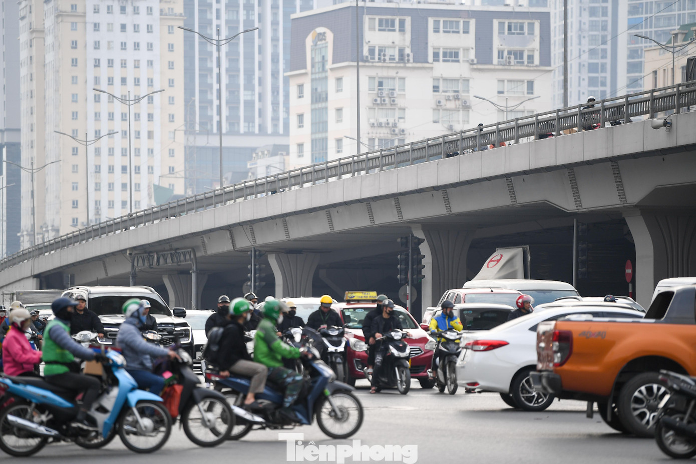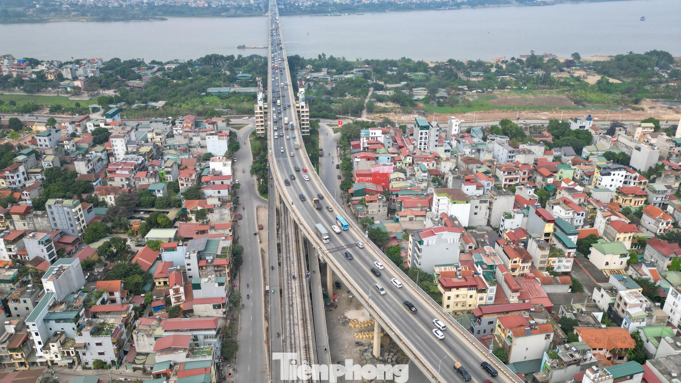 Khu vực chân cầu Thăng Long, nơi thường xuyên đông xe vào giờ cao điểm, ghi nhận mật độ phương tiện lớn. Nhiều người dân tranh thủ rời nội đô sớm để về quê, đi du lịch trong dịp nghỉ Tết Dương lịch.