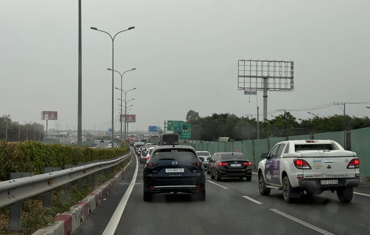 Ngay từ rạng sáng, cao tốc TP.HCM - Long Thành - Dầu Giây đã xuất hiện tình trạng kẹt xe cục bộ đoạn từ nút giao An Phú (TP.HCM) đến khu vực Long Thành (Đồng Nai).