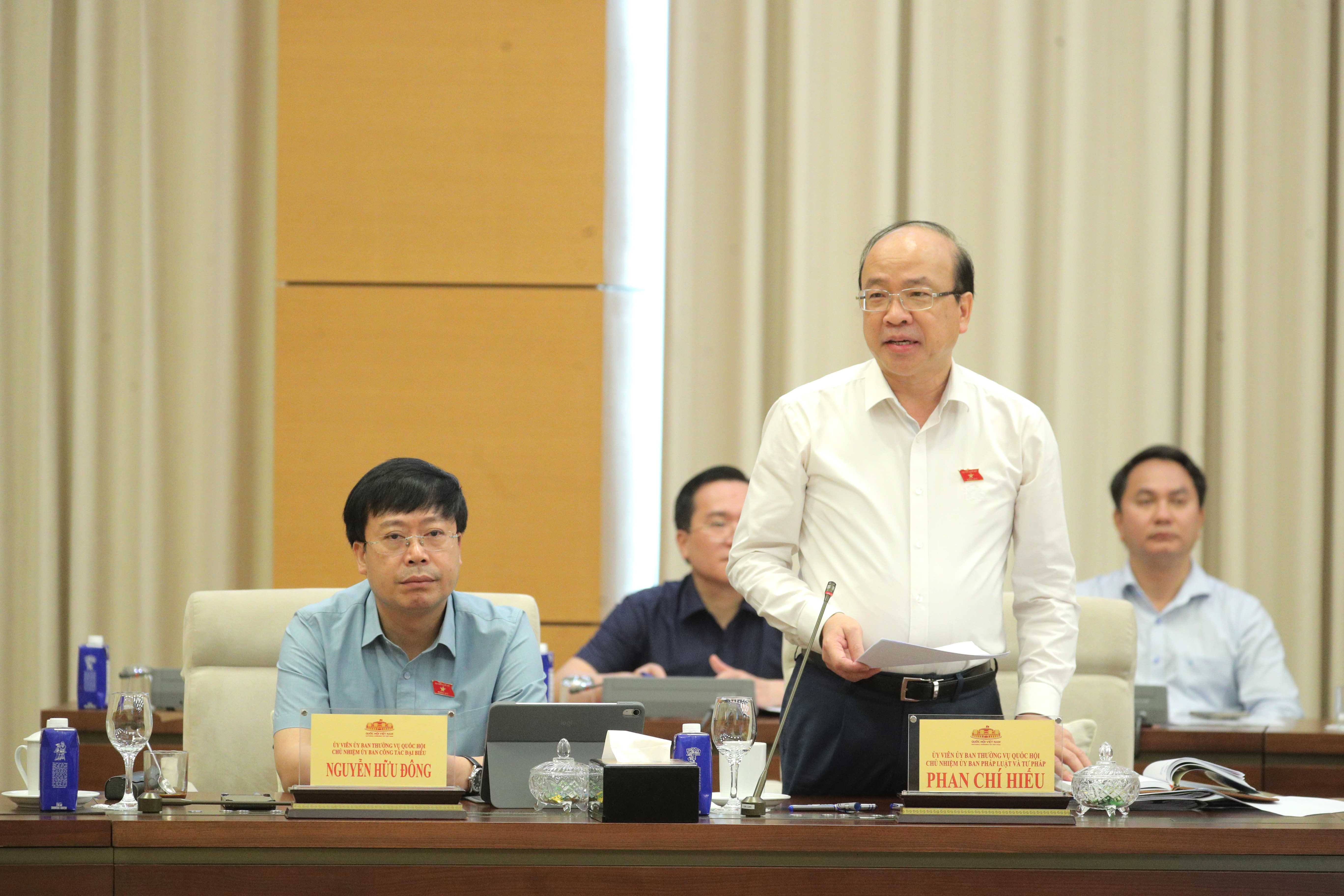 Chủ nhiệm Ủy ban Pháp luật và Tư pháp Phan Chí Hiếu trình bày Báo cáo thẩm tra