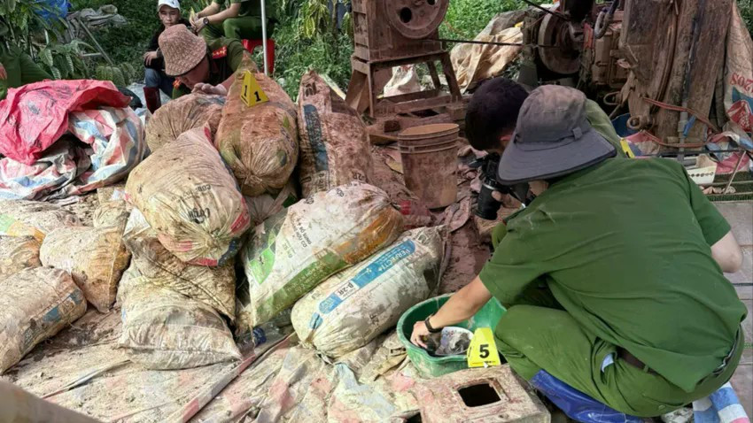 Theo kết quả điều tra ban đầu xác định các bị can đã khai thác hơn 5 tấn quặng đá. Trong đó, tách được khoảng 18 lượng vàng.