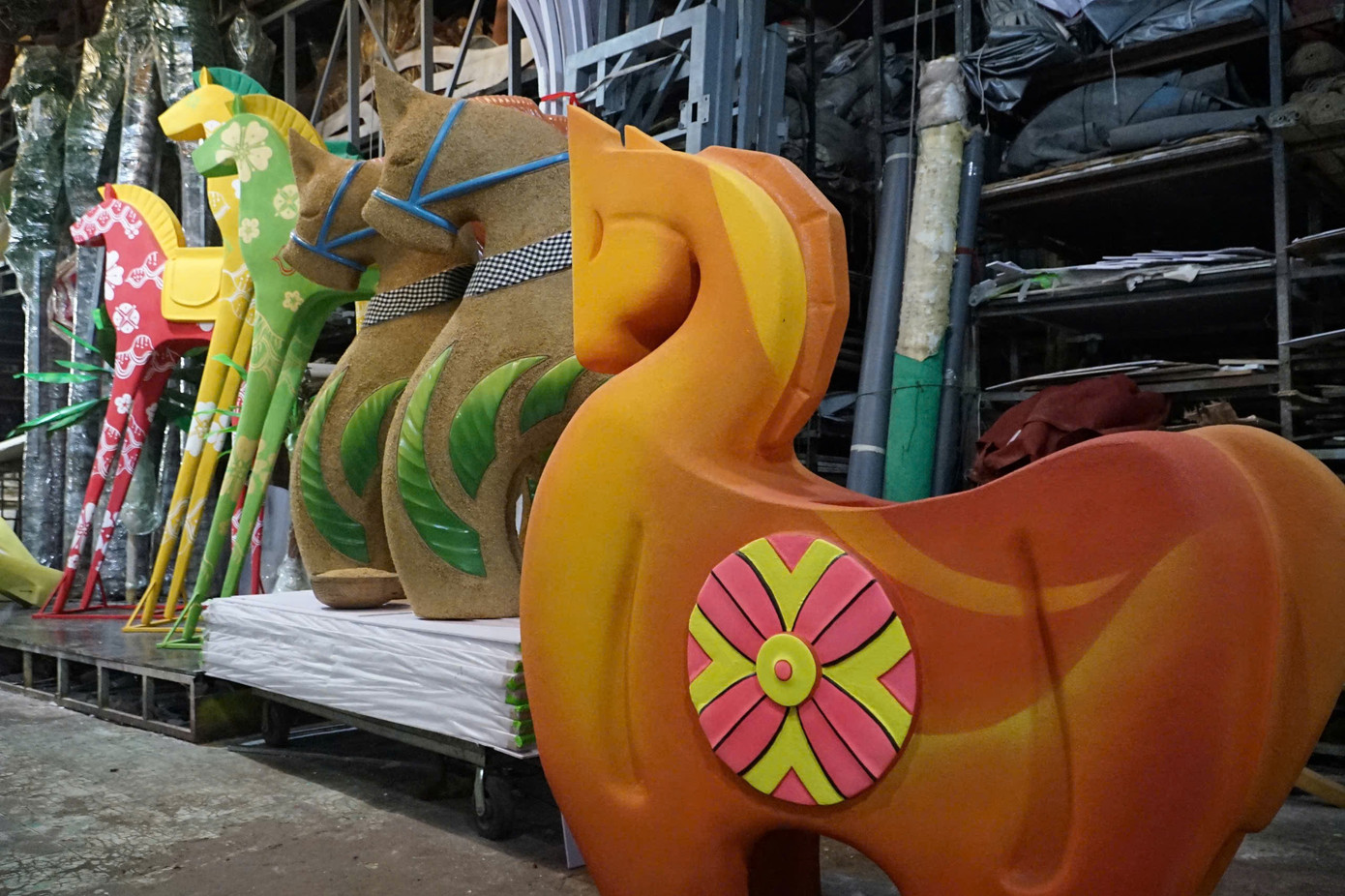 Những ngày này, tại các xưởng thi công linh vật chuẩn bị cho Đường hoa Nguyễn Huệ Tết Bính Ngọ 2026, không khí làm việc diễn ra khẩn trương khi các nghệ nhân và công nhân đang gấp rút hoàn thiện các tác phẩm trước khi đưa ra lắp đặt.