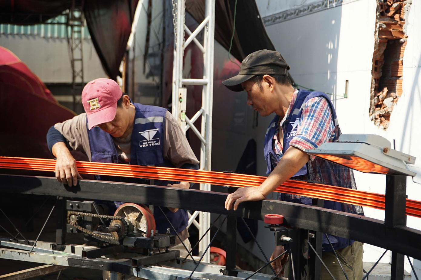 Hiện xưởng Văn Tòng có khoảng 50 nhân sự làm việc thường xuyên, được phân chia theo từng bộ phận như điêu khắc, mỹ thuật, cơ khí và vật tư. Càng cận Tết, khối lượng công việc càng tăng, nhiều công nhân phải làm việc liên tục từ sáng đến tối muộn, có hôm tăng ca đến 22-23h để kịp tiến độ chung.