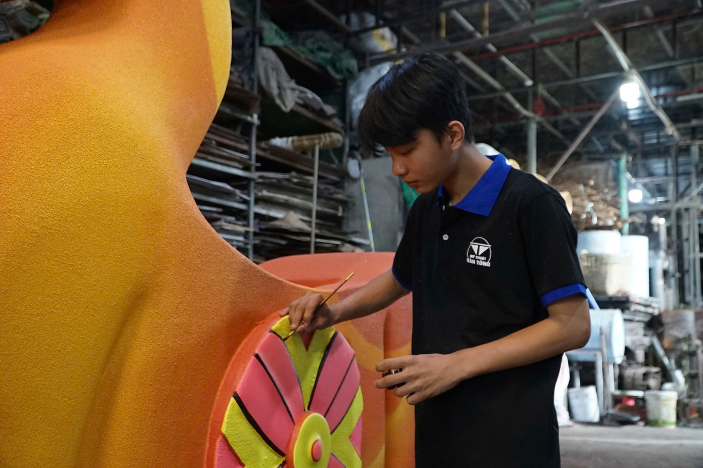 Hàng chục nghệ nhân và công nhân đang ngày đêm miệt mài hoàn thiện từng chi tiết để kịp đưa các linh vật ra lắp đặt trên tuyến phố đi bộ Nguyễn Huệ trong thời gian sớm nhất. Đường hoa dự kiến thi công từ cuối tháng 1 và hoàn thành trước ngày 15/2 để kịp chào đón người dân, du khách trong dịp Tết.