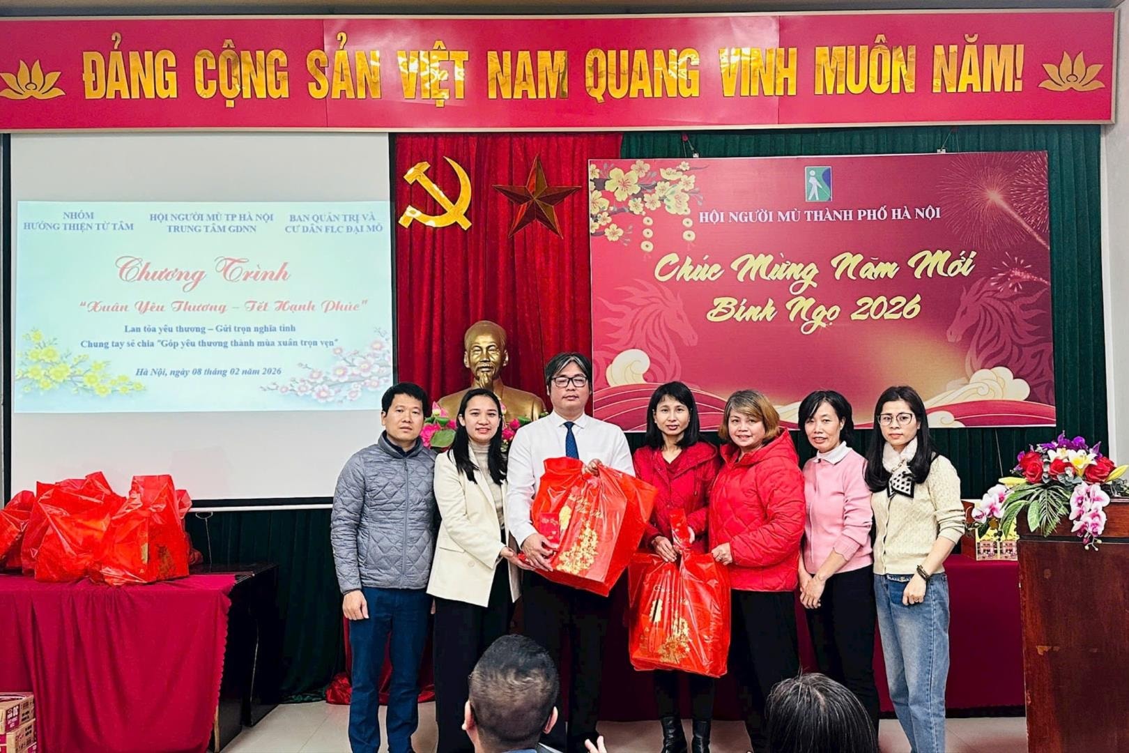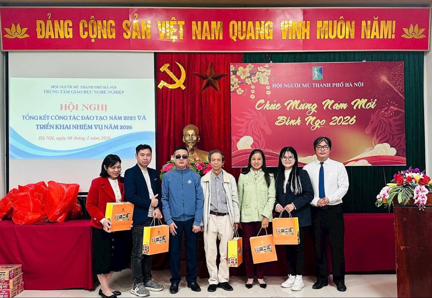 Trong khuôn khổ hội nghị tổng kết, Trung tâm phối hợp với nhóm Hướng thiện Từ Tâm và Ban Quản trị tòa nhà FLC Đại Mỗ tổ chức trao 40 suất quà Tết cho các học viên có hoàn cảnh khó khăn. Mỗi suất quà trị giá 450.000 đồng là sự sẻ chia thiết thực, góp phần mang đến một mùa Xuân Bính Ngọ ấm áp, trọn vẹn hơn cho người khiếm thị.