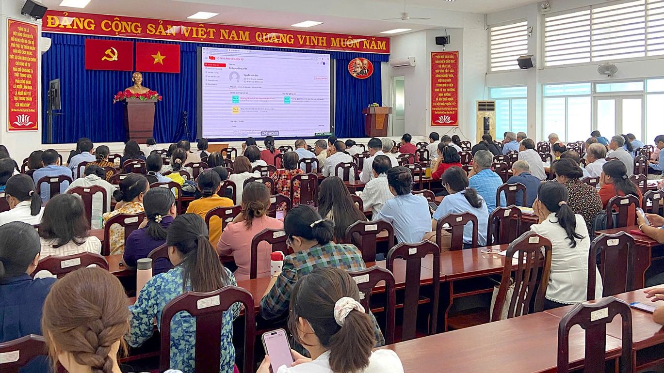 Hơn 300 đảng viên phường Tăng Nhơn Phú tham dự tập huấn sử dụng phần mềm Sổ tay đảng viên điện tử. Ảnh: PHƯƠNG UYÊN