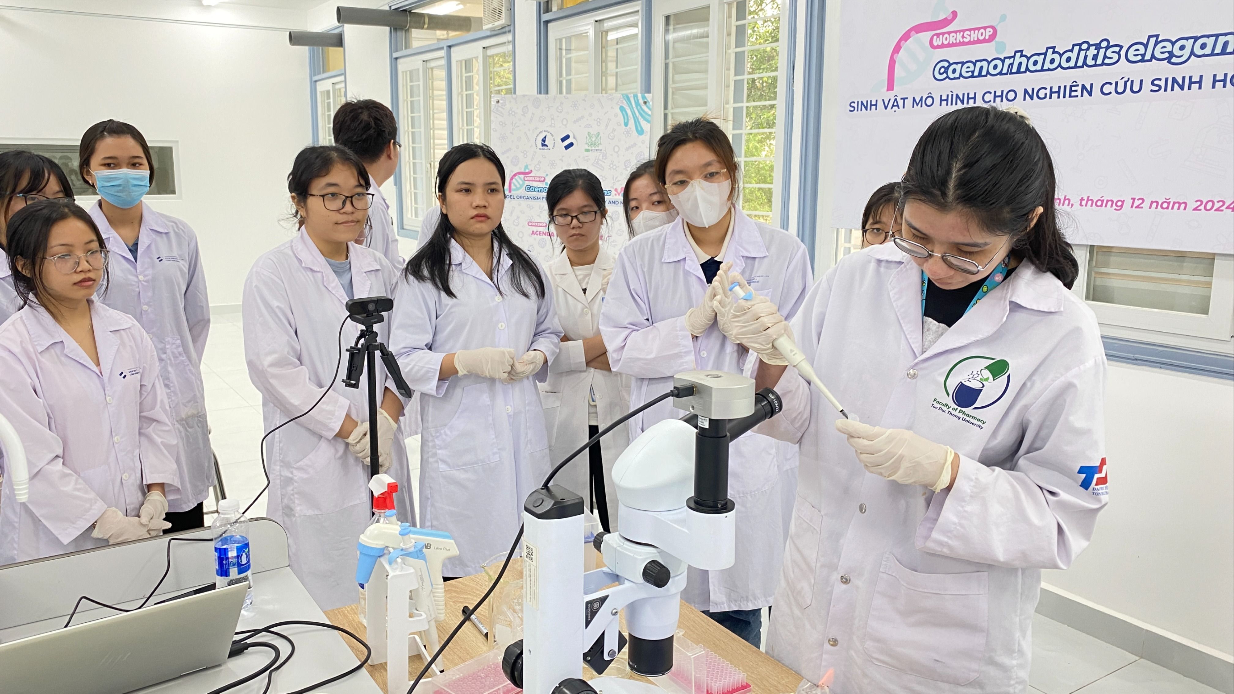 Học viên cao học ngành Công nghệ sinh học Trường ĐH Khoa học Tự nhiên (ĐH Quốc Gia TPHCM) trong giờ thực hành