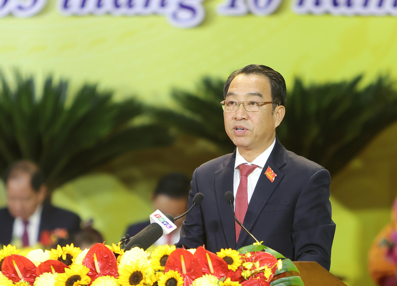 Chủ tịch UBND tỉnh Vĩnh Long Lữ Quang Ngời trình bày Báo cáo chính trị.