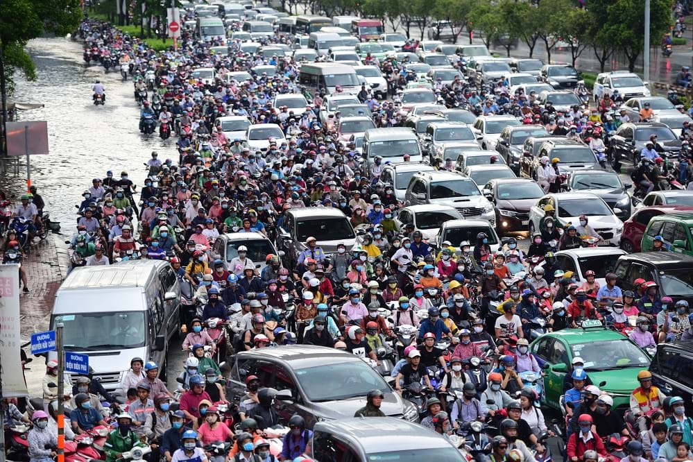 Tuy nhiên nhiều đô thị lớn tiếp tục đối mặt với ùn tắc giao thông, quá tải hạ tầng kỹ thuật – xã hội, ô nhiễm môi trường, ngập úng... Ảnh: Thanh Tùng