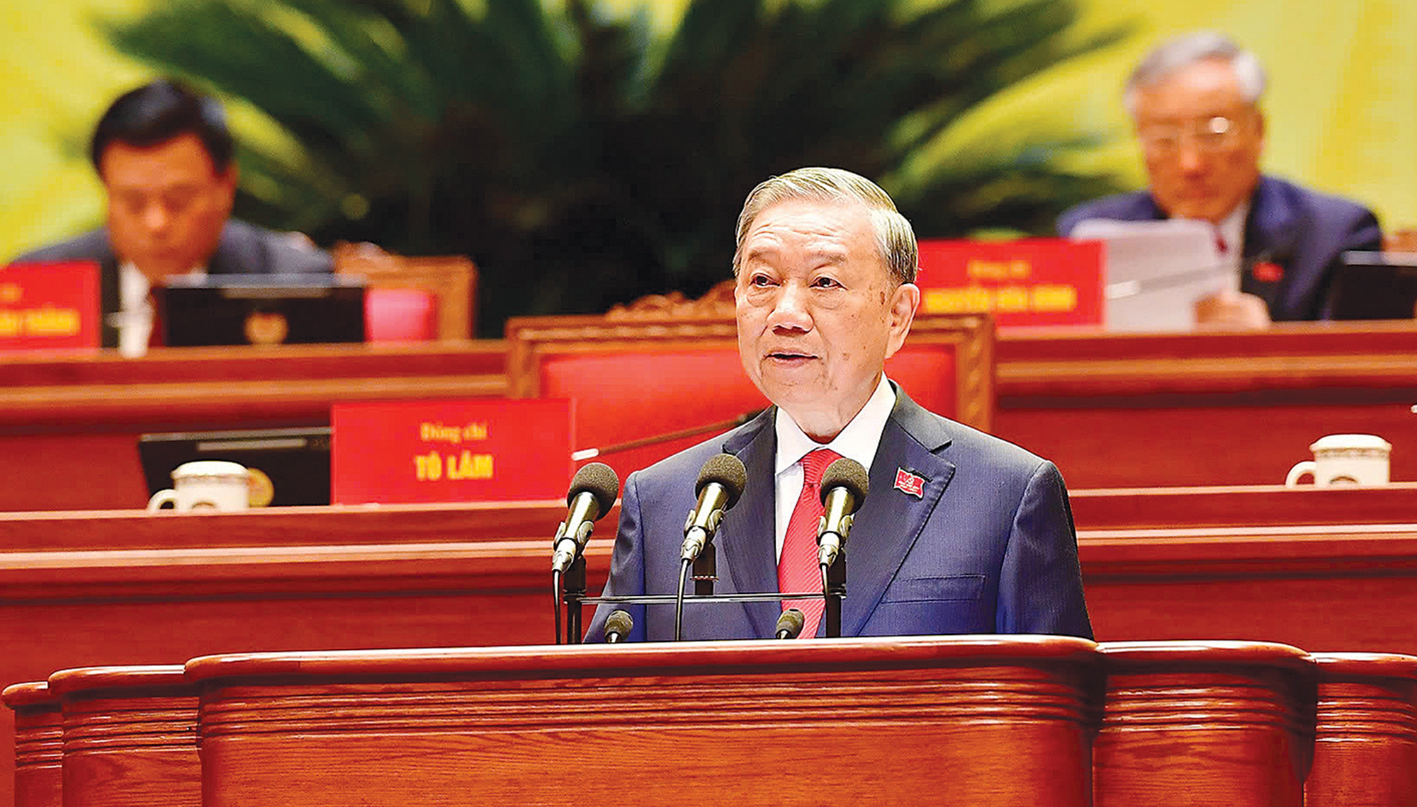 Tổng Bí thư Tô Lâm trình bày Báo cáo của Ban Chấp hành Trung ương Đảng khóa XIII về các văn kiện trình Đại hội XIV của Đảng.