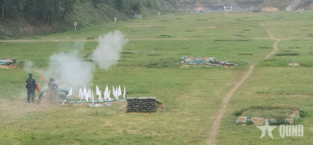 Đến thao trường của Trung đoàn, chúng tôi được chứng kiến một buổi kiểm tra bắn chiến đấu cấp tiểu đội của Tiểu đoàn 2. Với 2 nội dung, tiểu đội tham gia bắn tiến công và tiểu đội bắn phòng ngự đã vào vị trí chiếm lĩnh trận địa. Trên từng hầm hào, lô cốt thấp thoáng bóng quân phục của các chiến sĩ. Khi có lệnh của người chỉ huy, các vị trí đồng loạt khai hỏa. Hàng loạt mục tiêu giả định của địch bị đánh trúng, bốc cháy trong phút chốc. Sau đó, các chiến sĩ thuộc tiểu đội tham gia bắn tiến công vượt qua cửa mở, đánh chiếm căn cứ của địch.