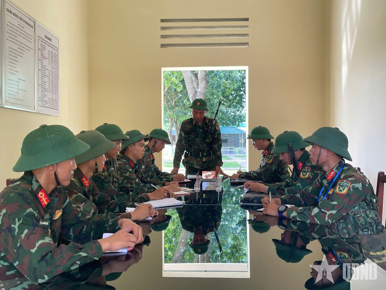 Quán triệt nhiệm vụ cho bộ đội trước khi thực hành các nội dung huấn luyện.