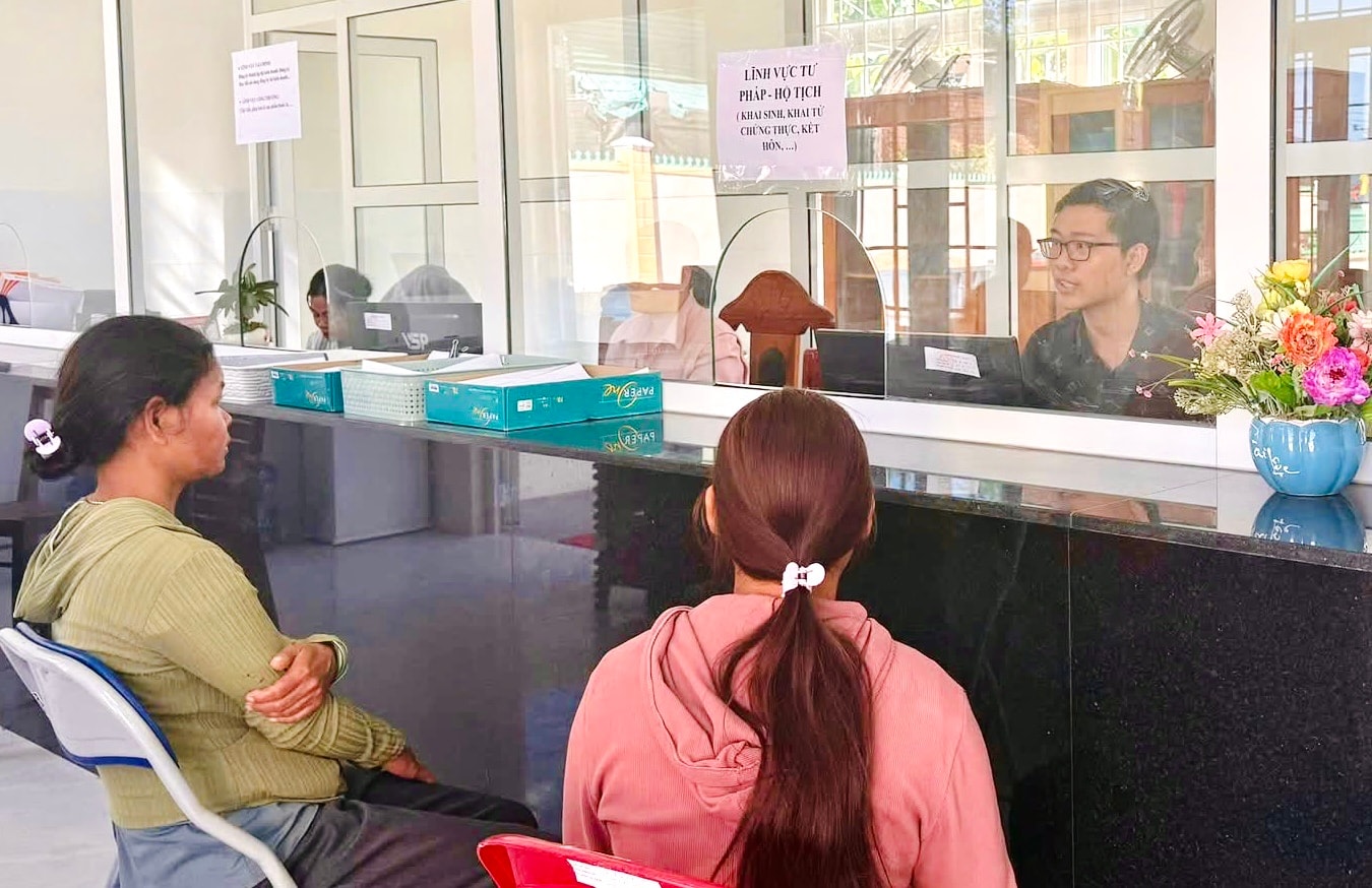Tại Trung tâm Phục vụ hành chính công xã, không khí làm việc diễn ra khẩn trương nhưng trật tự. Những tấm bảng niêm yết thủ tục rõ ràng, hệ thống máy tính kết nối mạng thông suốt, cán bộ, công chức hướng dẫn người dân kê khai hồ sơ trực tuyến ngay tại quầy. Quan điểm xuyên suốt của xã là mọi thủ tục hành chính liên quan đến người dân phải được tiếp nhận và giải quyết thông suốt, kịp thời, không để ai phải đi lại nhiều lần vì thiếu thông tin hay chậm trễ xử lý.