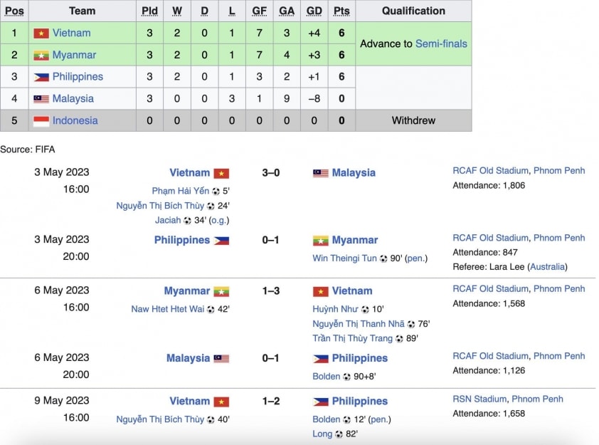 Tuy nhiên, thất bại đó không làm đội tuyển gục ngã. ĐT nữ Việt Nam vẫn đi tiếp với tư cách đội đầu bảng, sau đó lần lượt đánh bại Campuchia 4-0 ở bán kết và vượt qua chính Myanmar 2-0 trong trận chung kết để lên ngôi vô địch.