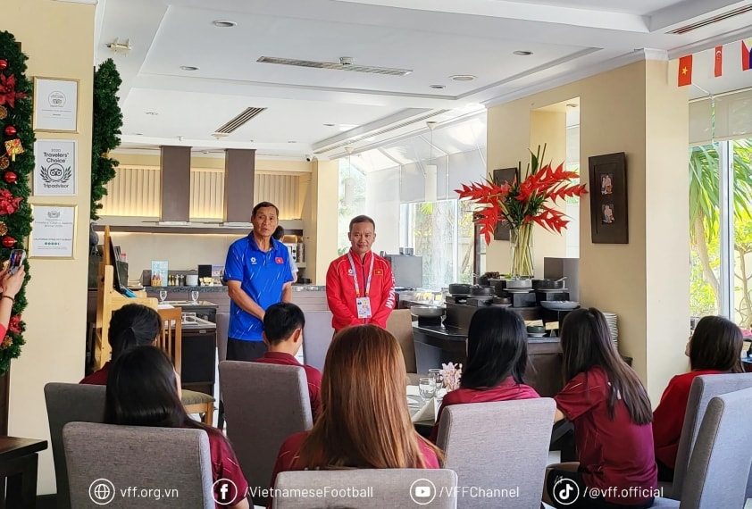 Sáng ngày 10/12, ông Nguyễn Hồng Minh – Phó Cục trưởng Cục Thể dục Thể thao Việt Nam và là Trưởng đoàn Thể thao Việt Nam tại SEA Games 33 – đã có buổi gặp gỡ để khích lệ tinh thần toàn đội trước trận đấu quan trọng.